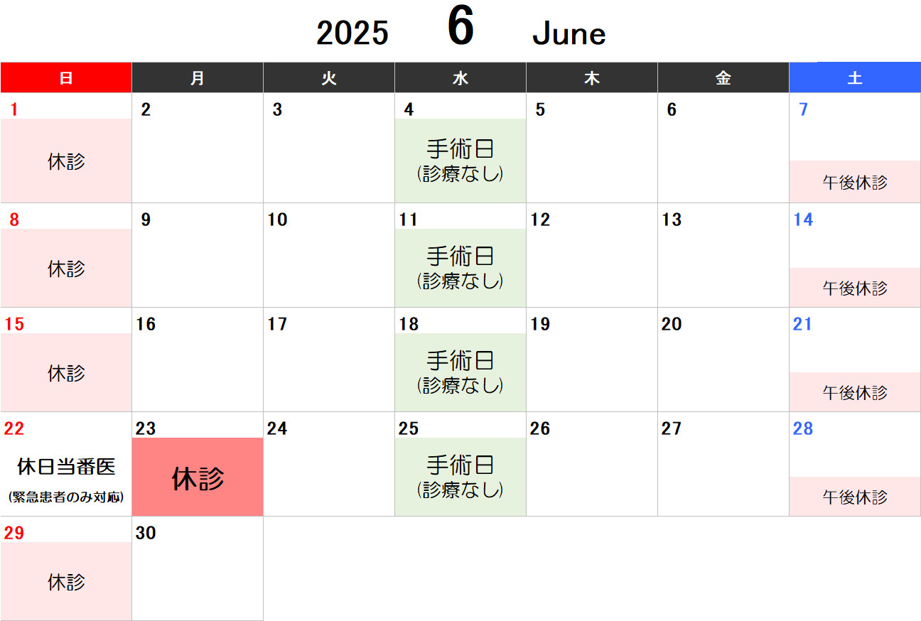 ※ 水曜日、土曜日午後、日曜日、祝祭日は休診です。