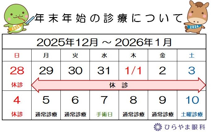 12月28日(日)~2026年1月4日(日):休診